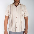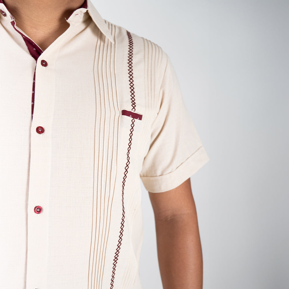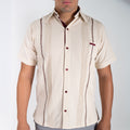 Guayabera beige con vivos vino | Manga corta