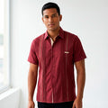 Guayabera camisa vino picueta kaki de Lino Flamé de manga corta, Hecha en Tekit Yucatán.